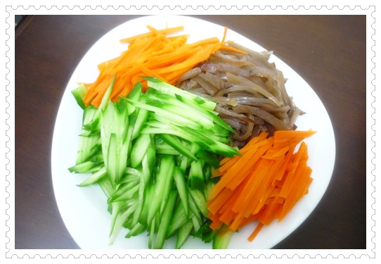 從木耳、紅蘿蔔到小黃瓜我都是用手工慢慢切成絲,